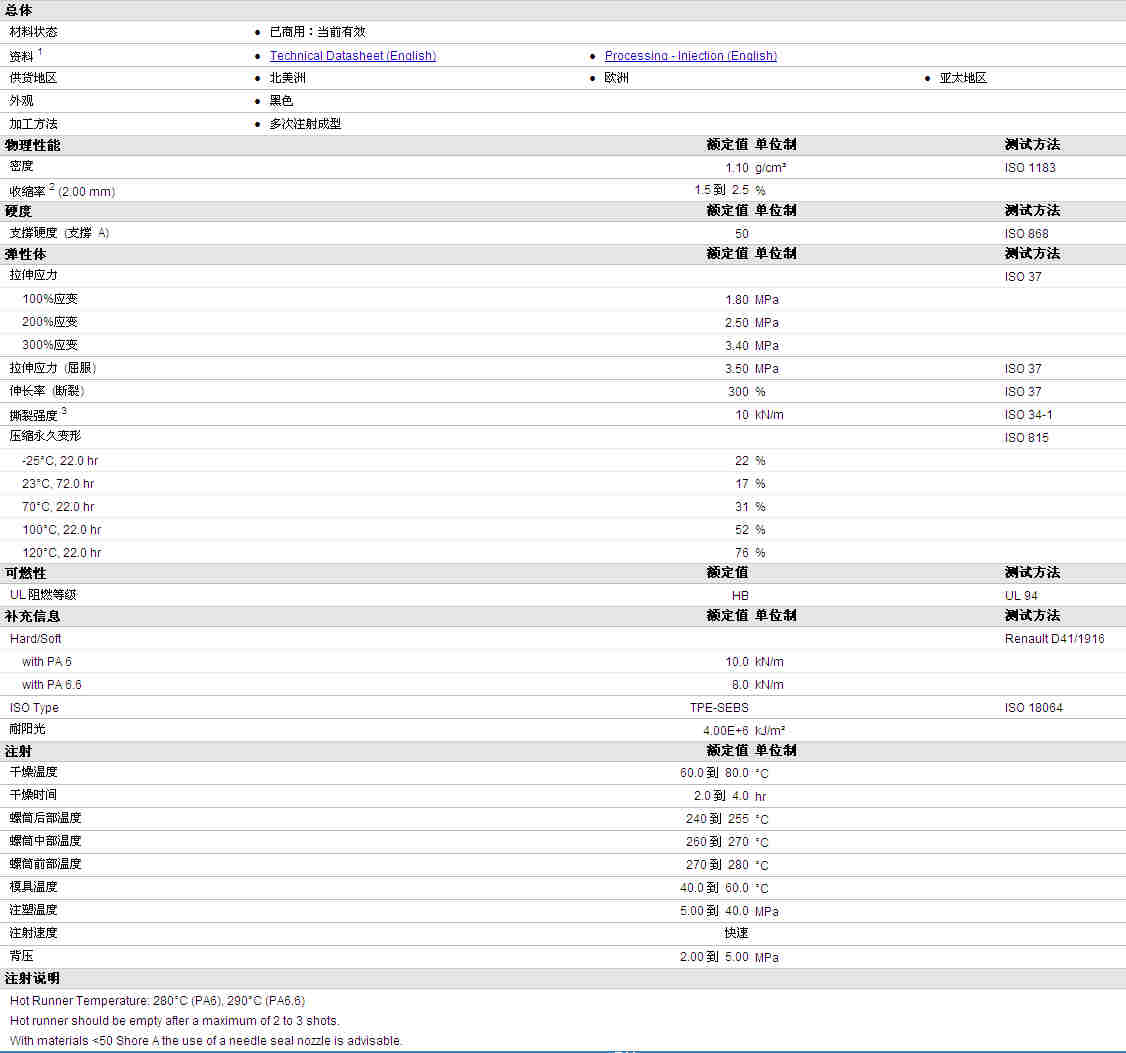 THERMOLAST PA66-6 K TC5PCZ (Series: CO/PA/CS)物性表资料详细内容如图