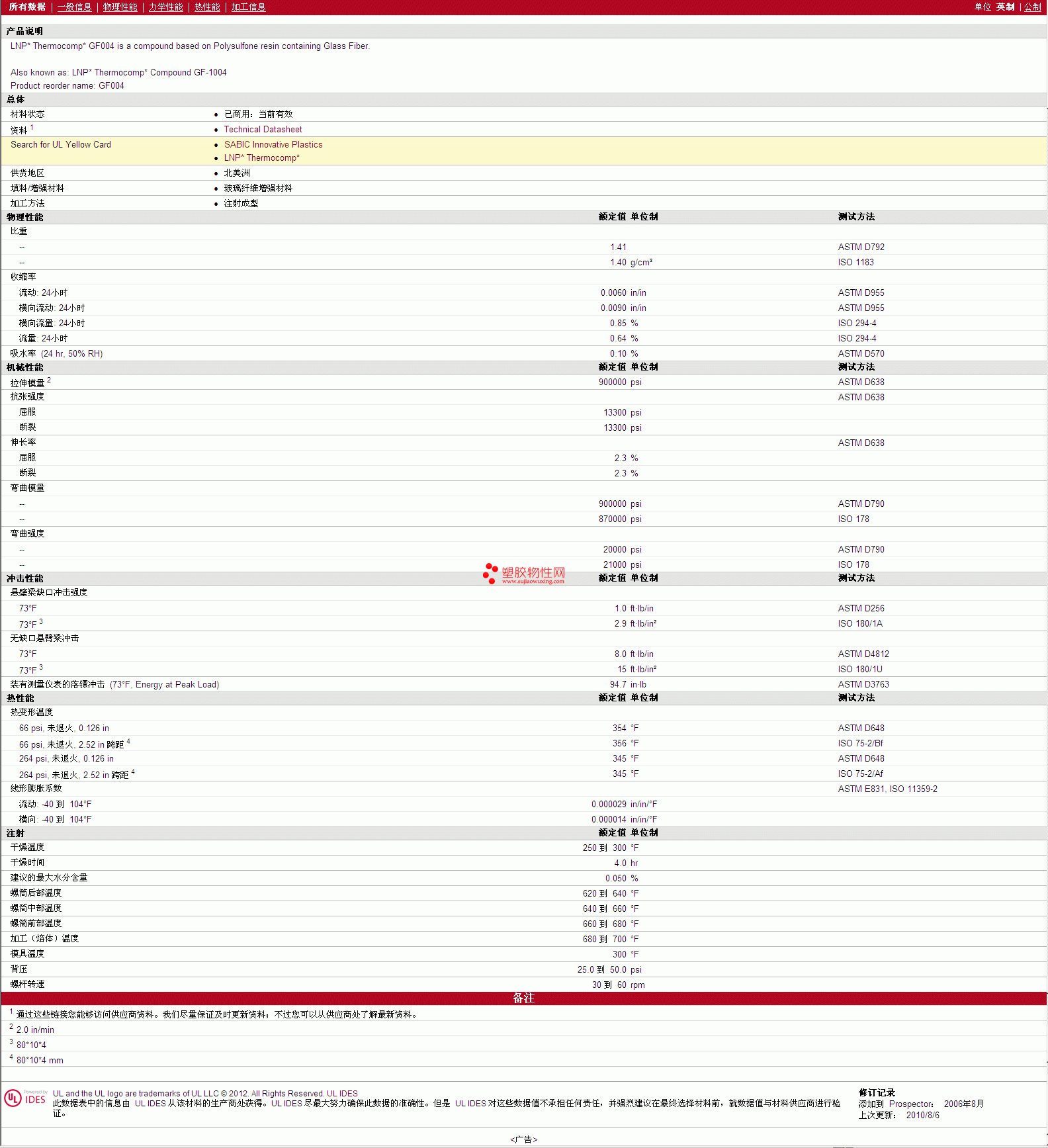 LNP Thermocomp PSU GF004 物性表