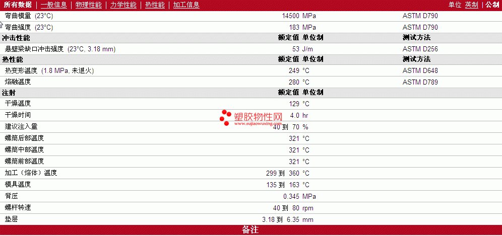 | 机械性能 | 额定值 | 单位制 | 测试方法 |