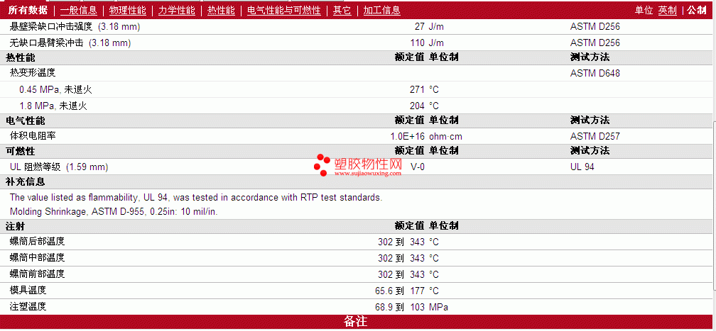 | 机械性能 | 额定值 | 单位制 | 测试方法 |