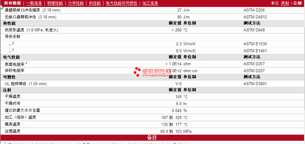 | 机械性能 | 额定值 | 单位制 | 测试方法 |