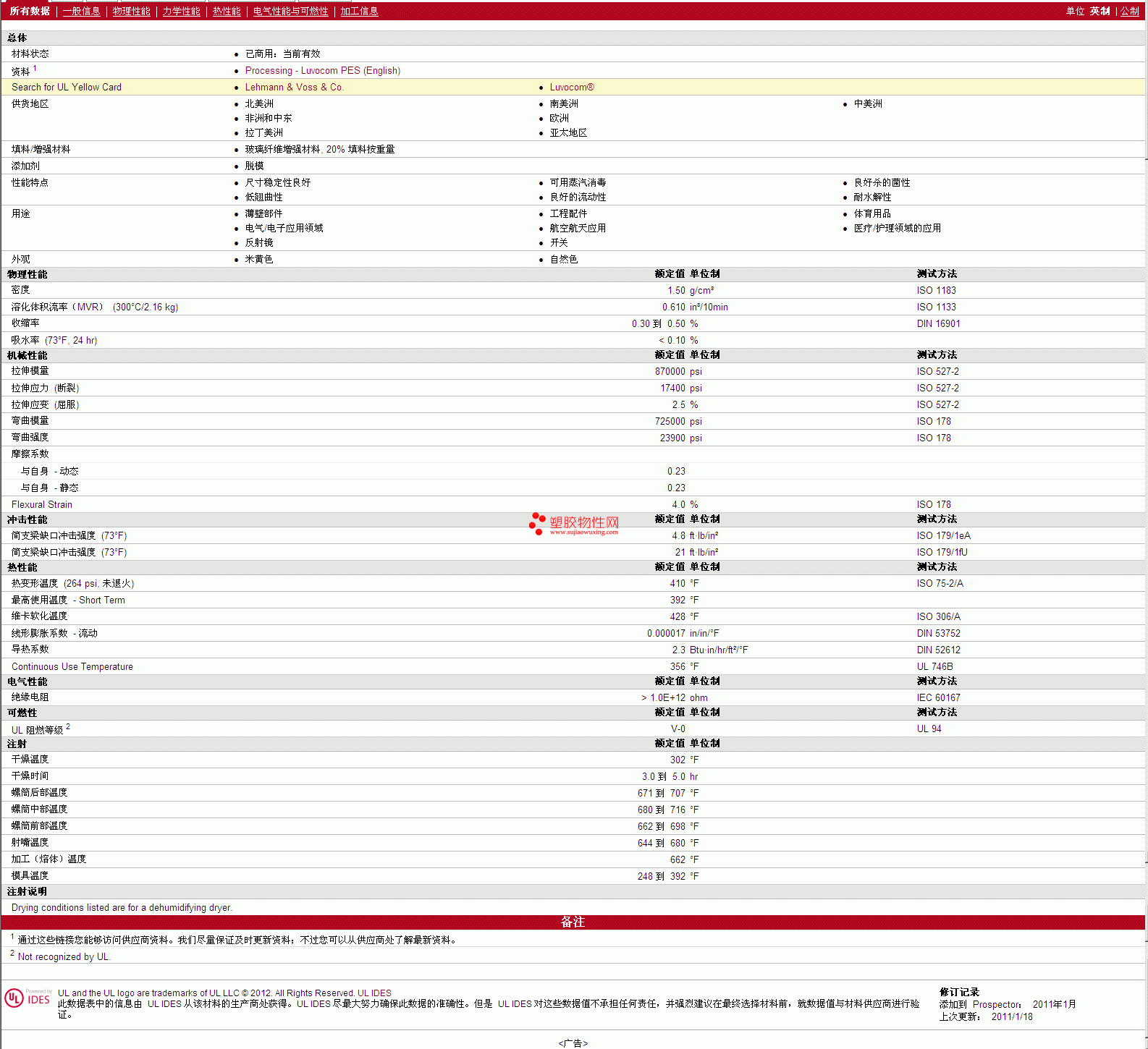 如需了解 Luvocom PSU 1100/GF/20/EM/MR 物性表更多详情,ROHS(SGS)报告、物质安全资料表(MSDS)、材质证明、UL黄卡等,最新行情报价等可来电咨询:赵先生:13424755533或QQ: 27660005