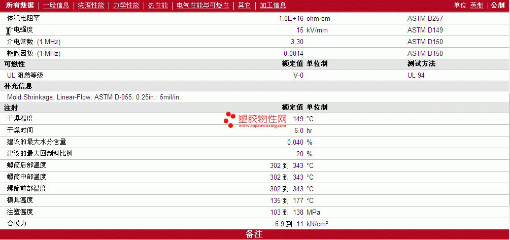 | 机械性能 | 额定值 | 单位制 | 测试方法 |