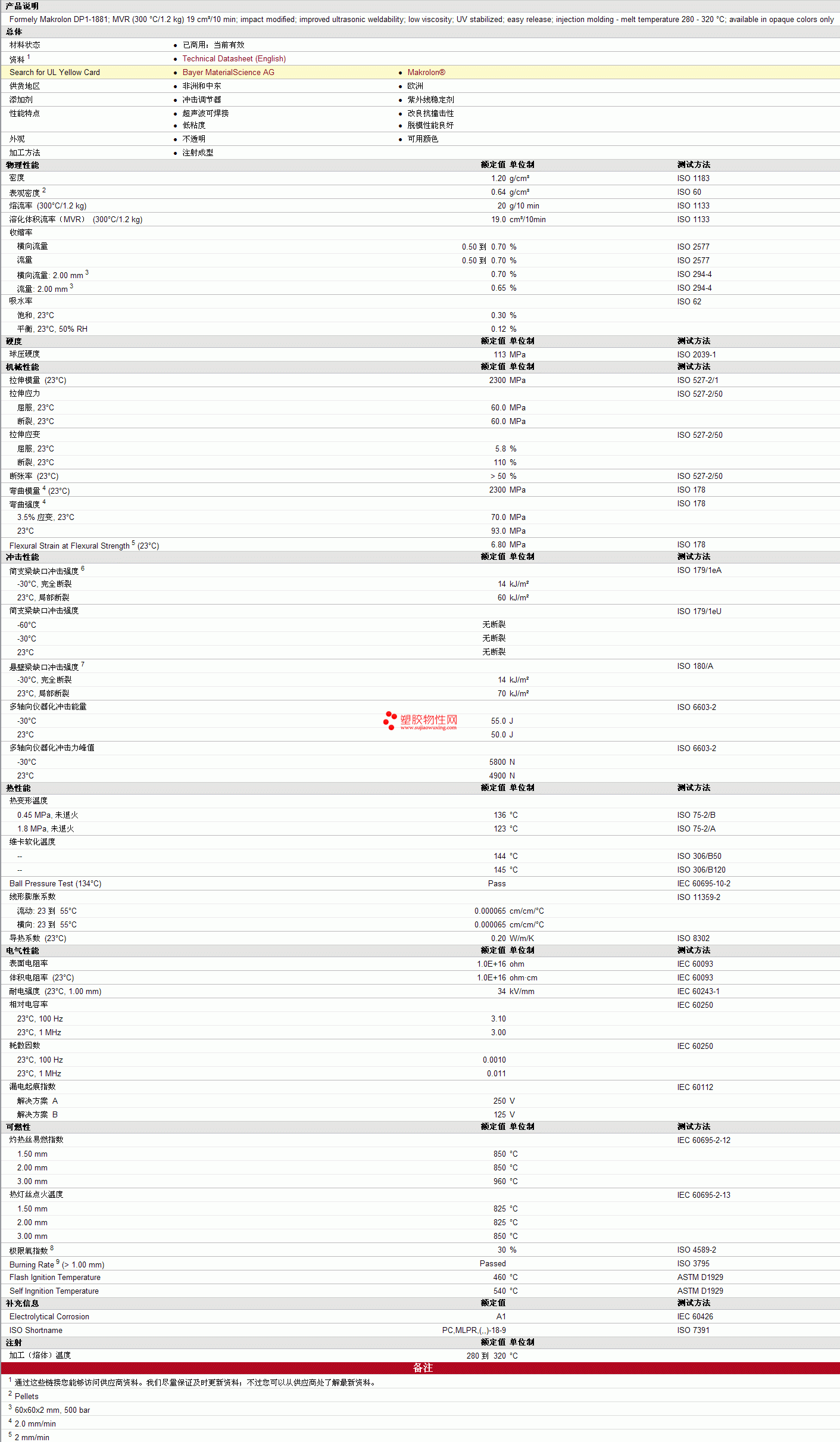 Makrolon pc 1881物性表见图片