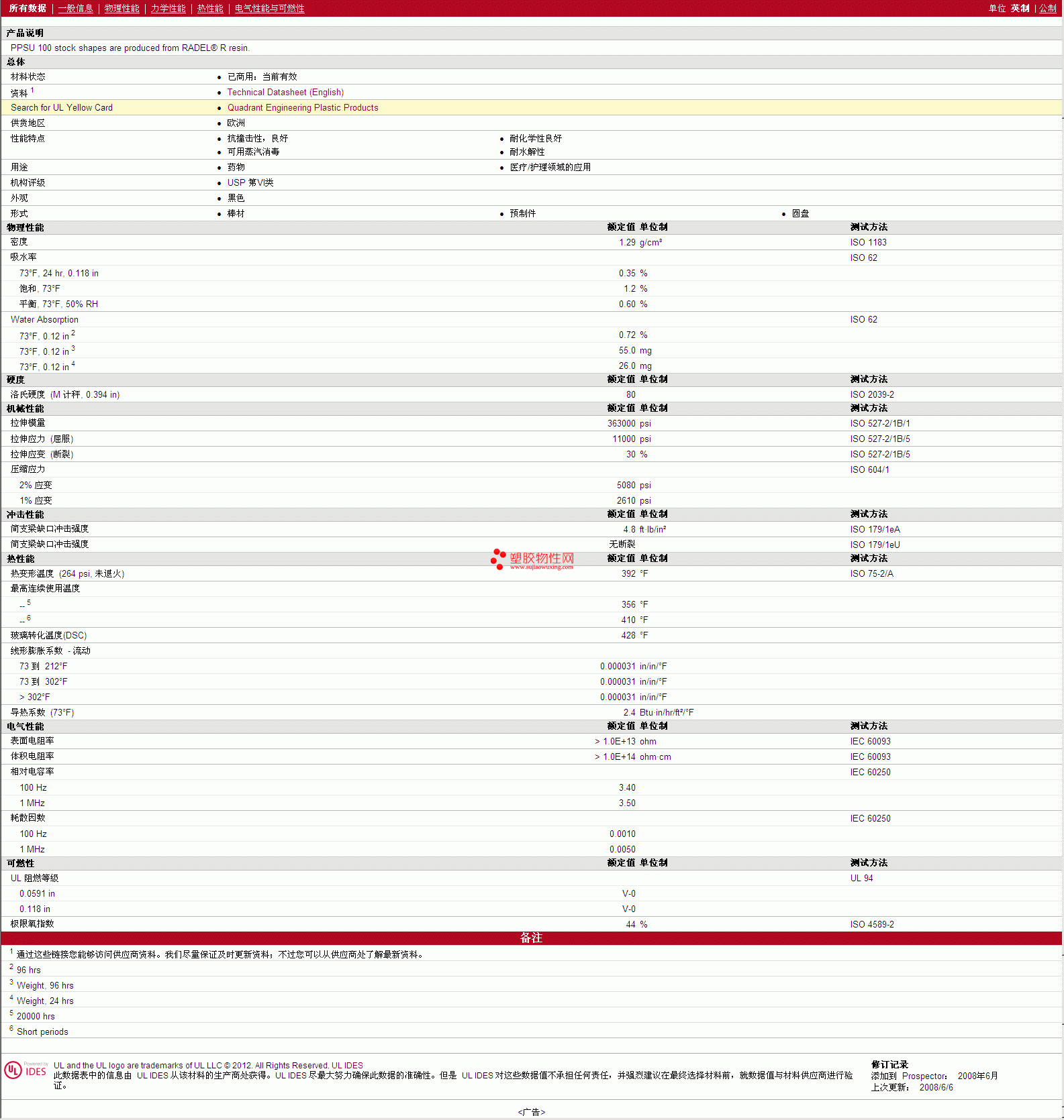 需了解Quadrant EPP PPSU 1000 物性表更多详情,材质证明、ROHS(SGS)报告、物质安全资料表(MSDS)、UL黄卡等,最新行情报价等可来电咨询:赵先生:13424755533或QQ: 27660005