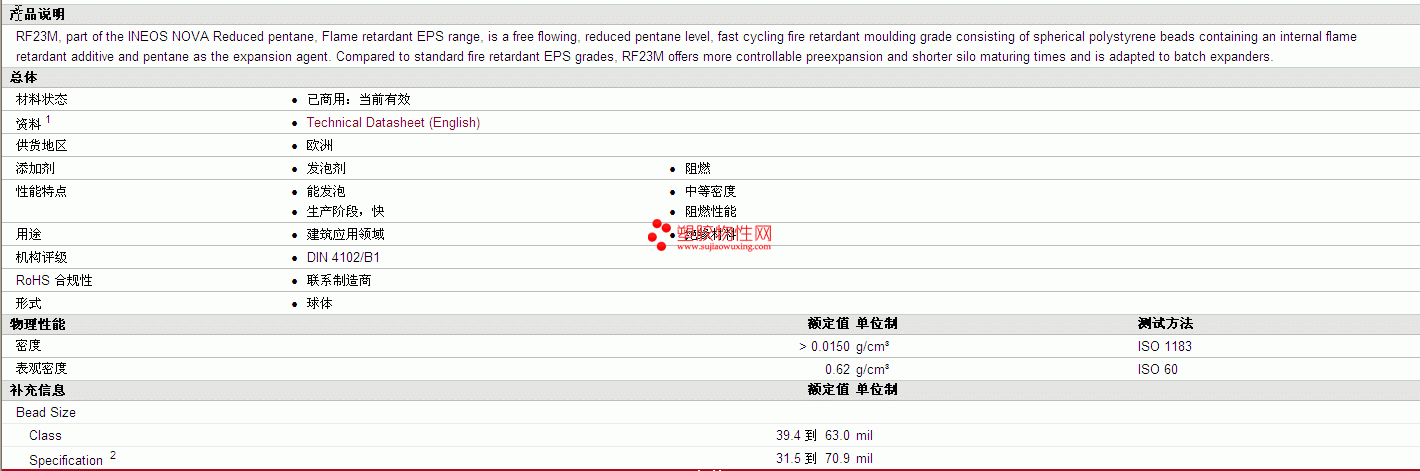 Expandable PS EPS RF23M 物性表 详细情况如图