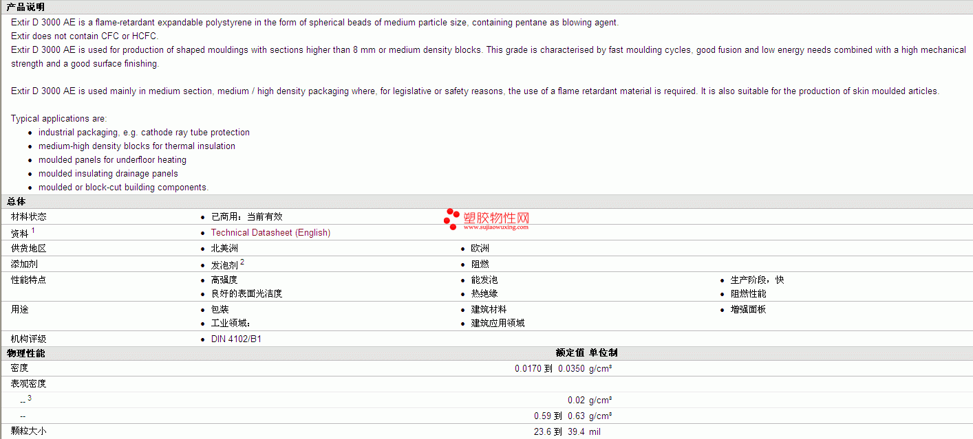 Extir EPS D 3000 AE 物性表 详细情况如图