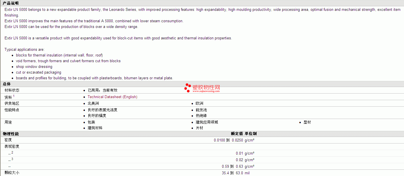 Extir EPS LN 5000 物性表 如图所示