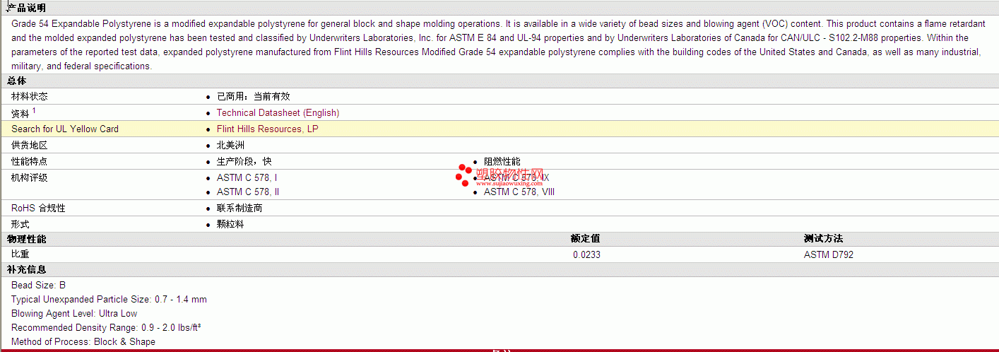 | 比重 | 0.0233 | ASTM D792 |