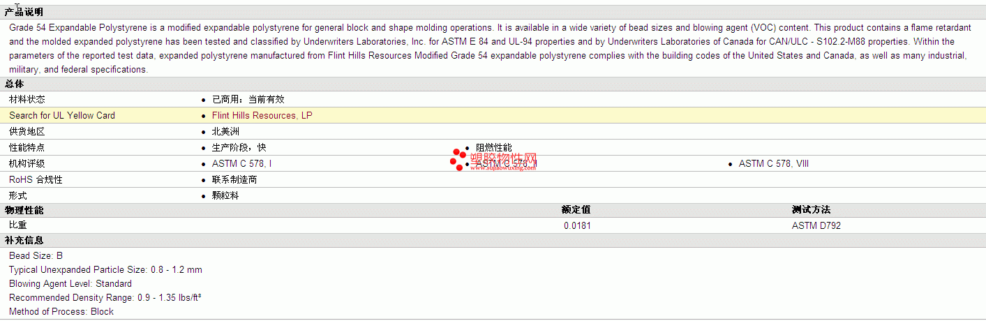 | Bead Size: B Typical Unexpanded Particle Size: 0.8 - 1.2 mm Blowing Agent Level: Standard Recommended Density Range: 0.9 - 1.35 lbs/ft³ Method of Process: Block |