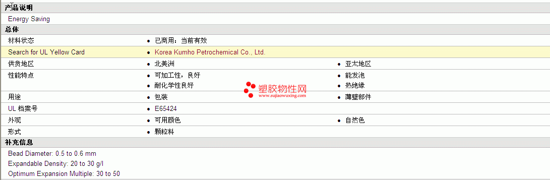 如需了解Kumho EPS ES30物性表更多详情,ROHS(SGS)报告、物质安全资料表(MSDS)、材质证明、UL黄卡等,最新行情报价等可来电咨询:赵先生:13424755533。或QQ:27660005