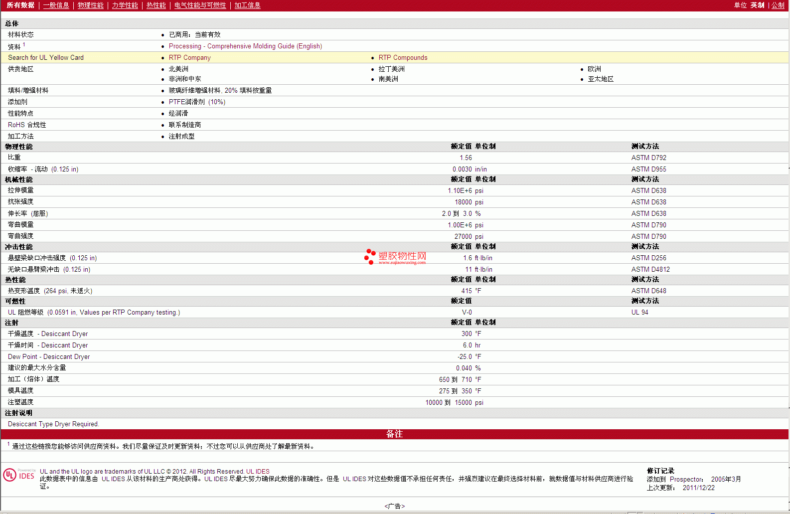 如需了解RTP Compounds PSU 1403 TFE 10 物性表更多详情,ROHS(SGS)报告、物质安全资料表(MSDS)、材质证明、UL黄卡等,最新行情报价等可来电咨询:赵先生:13424755533或QQ: 27660005