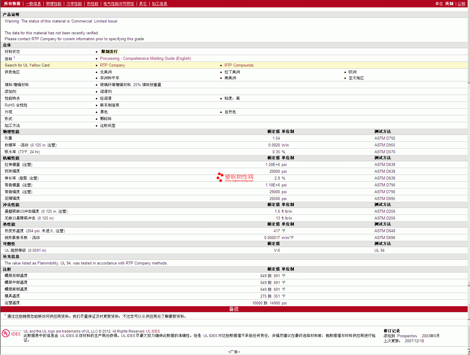 如需了解 RTP Compounds PSU 1404 N L 物性表更多详情,ROHS(SGS)报告、物质安全资料表(MSDS)、材质证明、UL黄卡等,最新行情报价等可来电咨询:赵先生:13424755533或QQ: 27660005