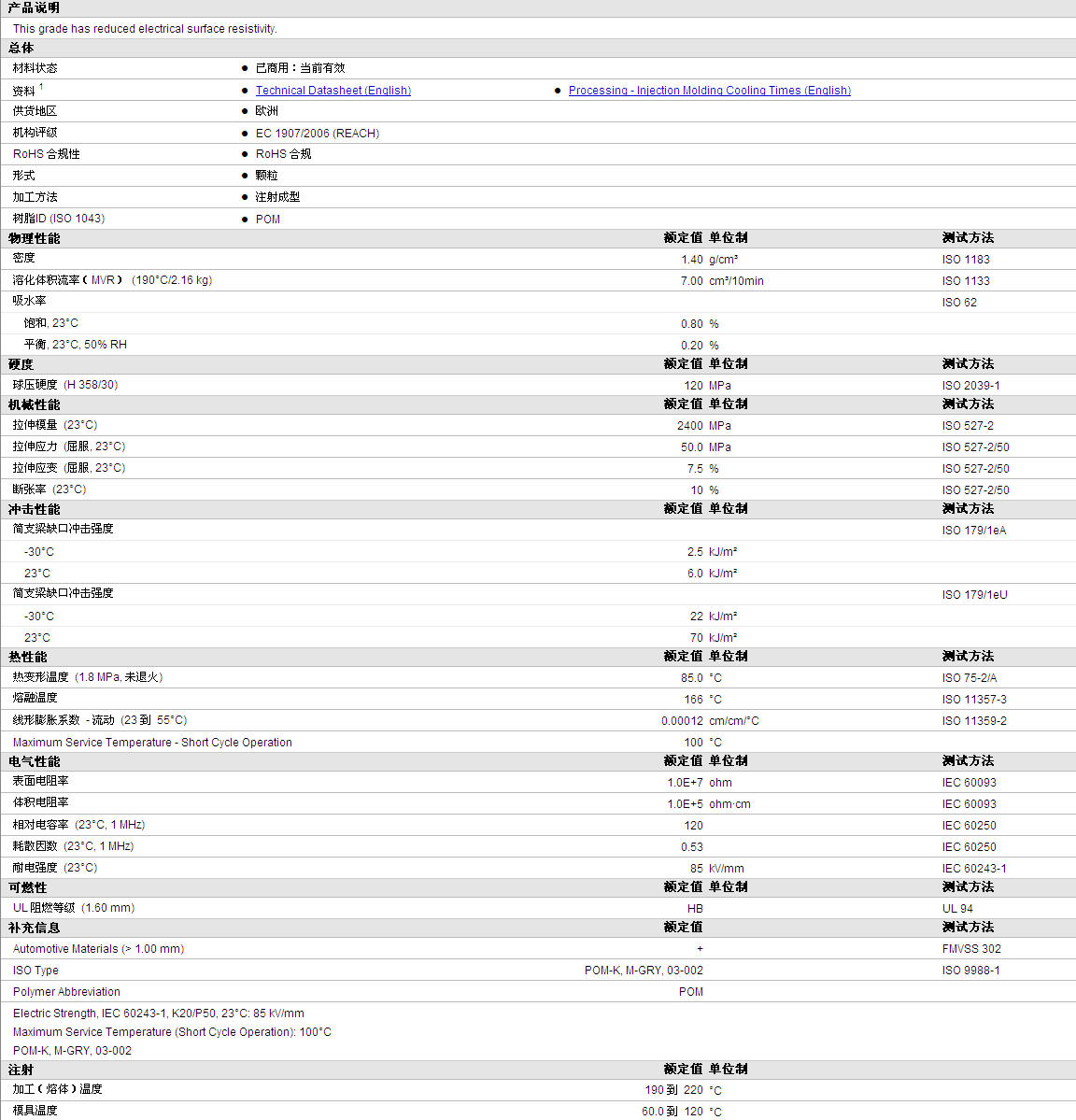 | 溶化体积流率(MVR) (190°C/2.16 kg) | 7.00 | cm³/10min | ISO 1133 |