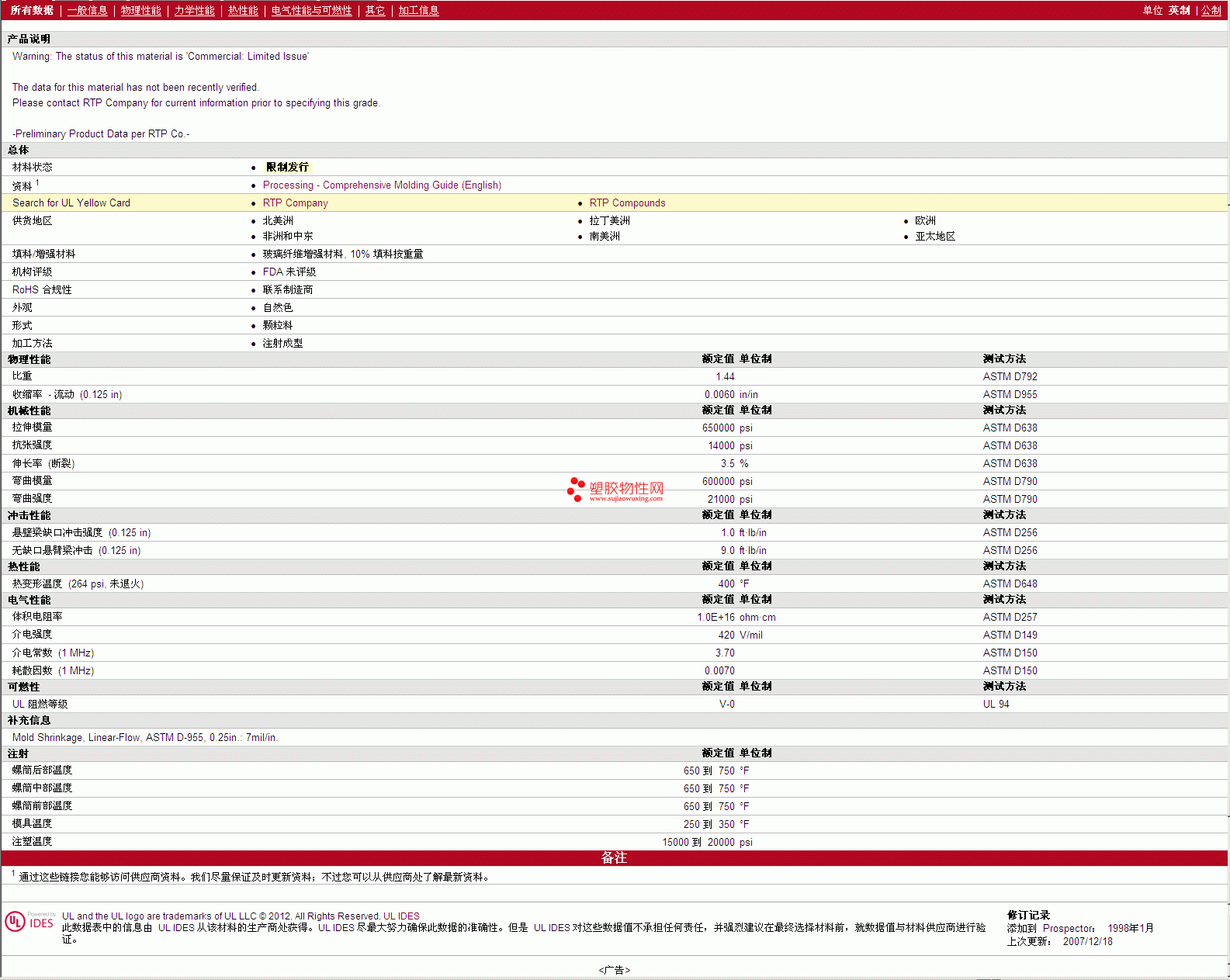 更多RTP Compounds PSU 1601 Z 物性表报价,图片、材质证明、UL黄卡、物质安全资料表(MSDS)等可来电咨询赵先生:13424755533或QQ: 27660005