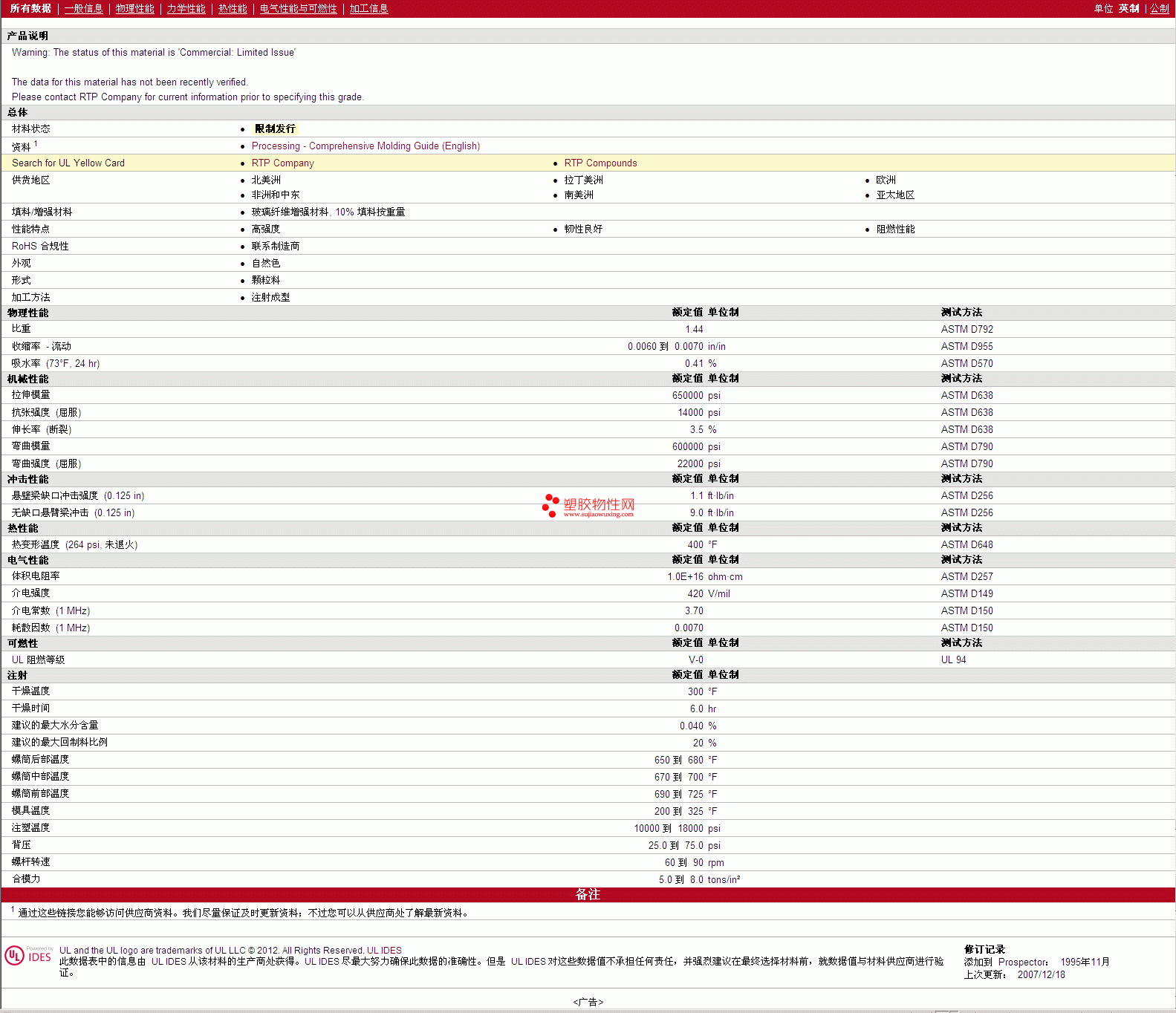 RTP Compounds PSU 1601 物性表