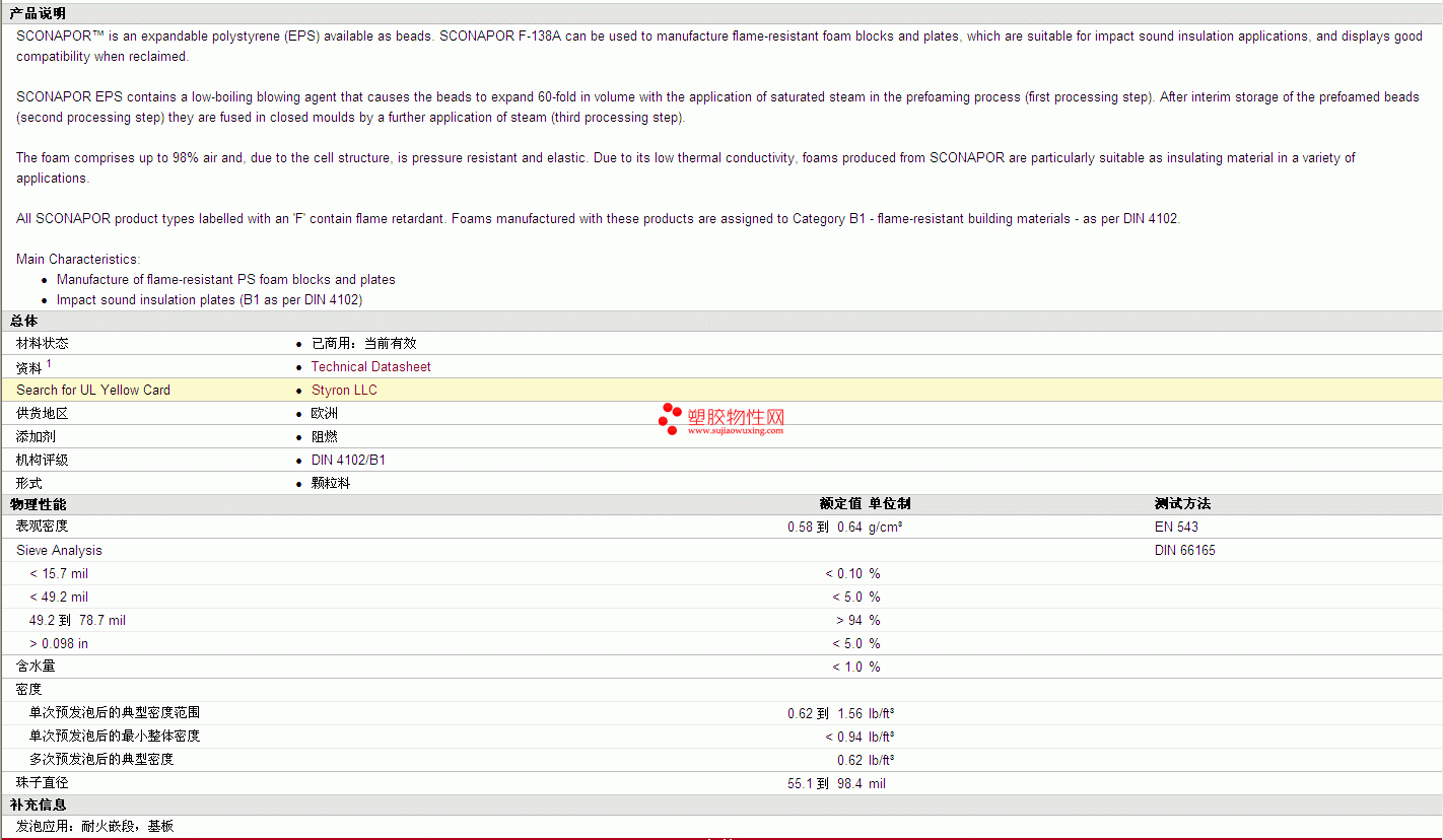 需了解SCONAPO EPS F-138A物性表更多详情,材质证明、ROHS(SGS)报告、物质安全资料表(MSDS)、UL黄卡等,最新行情报价等可来电咨询:赵先生:13424755533。或QQ:27660005