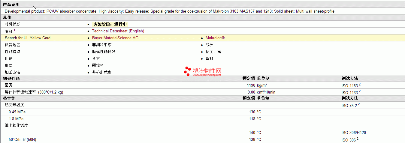 Makrolon pc DP1-1816物性表 见图片