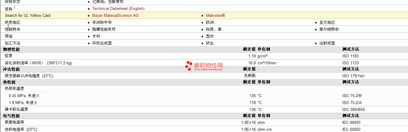 Makrolon pc ET UV110物性表见图片