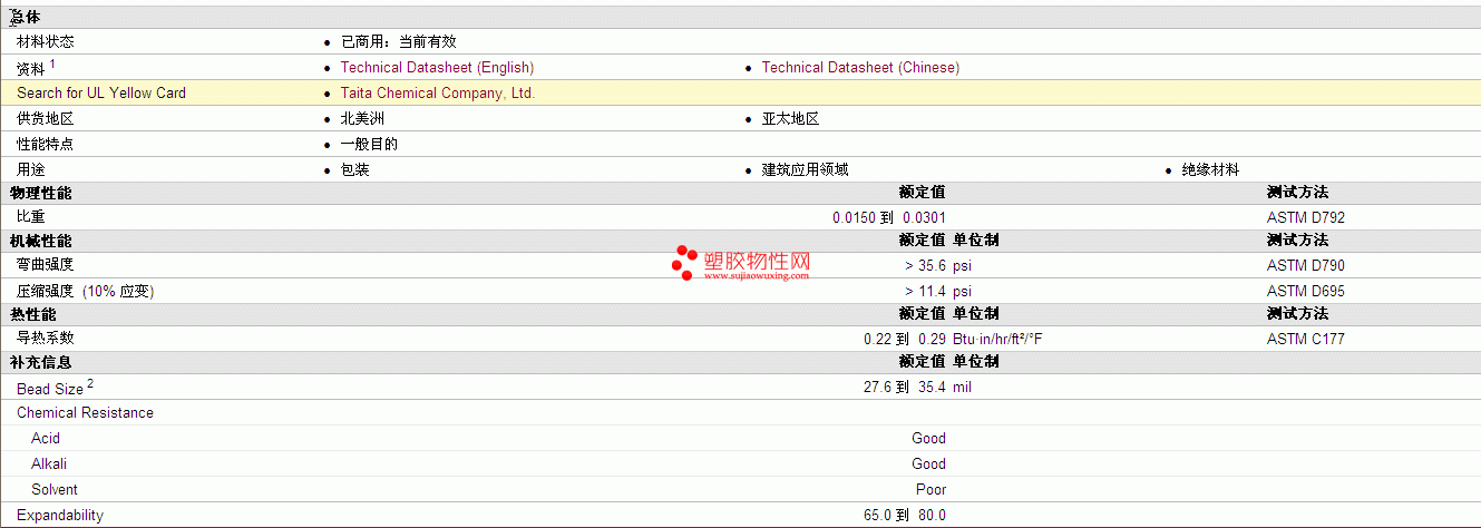 如需了解Taitacell EPS 301Ss物性表更多详情,ROHS(SGS)报告、物质安全资料表(MSDS)、材质证明、UL黄卡等,最新行情报价等可来电咨询:赵先生:13424755533。或QQ:27660005