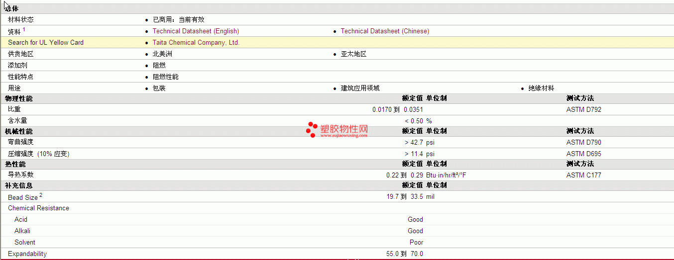 如需了解Taitacell EPS 321F物性表更多详情,ROHS(SGS)报告、物质安全资料表(MSDS)、材质证明、UL黄卡等,最新行情报价等可来电咨询:赵先生:13424755533。或QQ:27660005