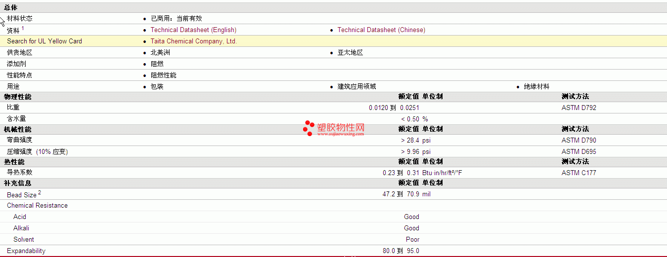 如需了解Taitacell EPS 321MM 物性表更多详情,ROHS(SGS)报告、物质安全资料表(MSDS)、材质证明、UL黄卡等,最新行情报价等可来电咨询:赵先生:13424755533。或QQ:27660005