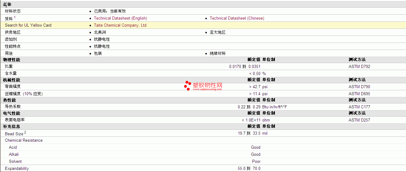 更多Taitacell EPS 351FA 物性表报价,图片、材质证明、UL黄卡、物质安全资料表(MSDS)等,最新行情报价等可来电咨询赵先生:13424755533。或QQ:27660005