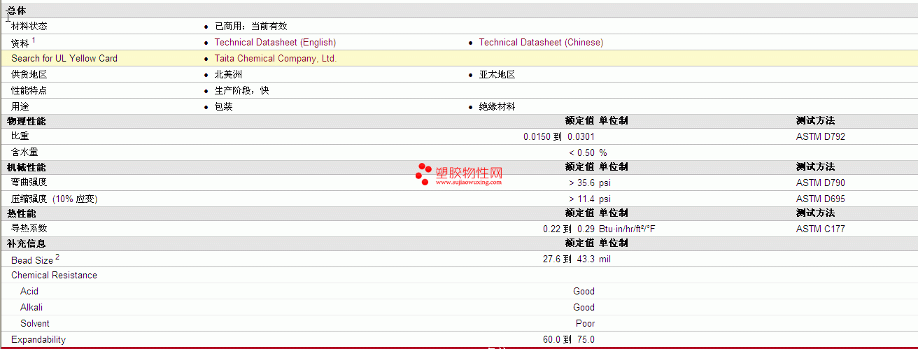 更多Taitacell EPS 391S 物性表报价,图片、材质证明、UL黄卡、物质安全资料表(MSDS)等,最新行情报价等可来电咨询赵先生:13424755533。或QQ:27660005