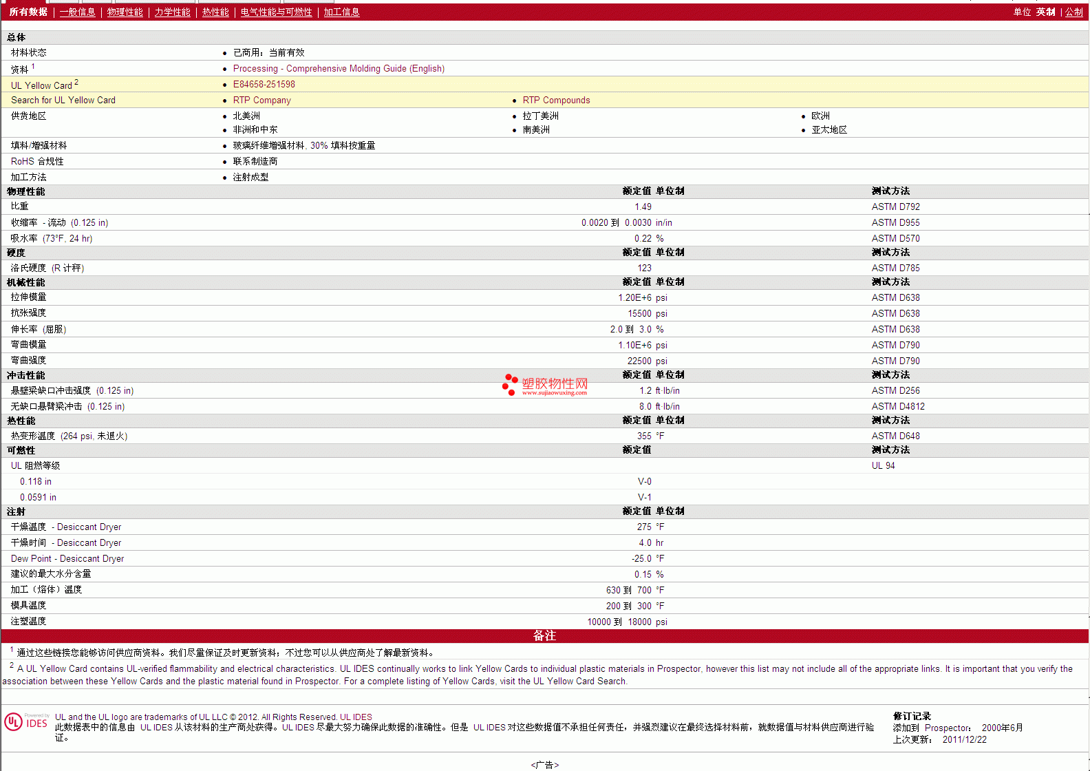 如需了解RTP Compounds PSU 900 GF-130 物性表更多详情,ROHS(SGS)报告、物质安全资料表(MSDS)、材质证明、UL黄卡等,最新行情报价等可来电咨询:赵先生:13424755533或QQ: 27660005