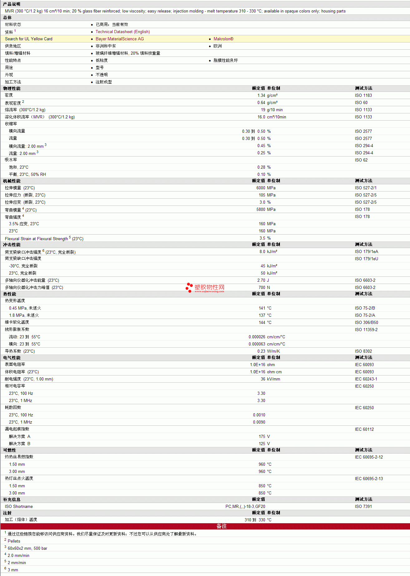 Makrolo pc GF8001物性表见图片