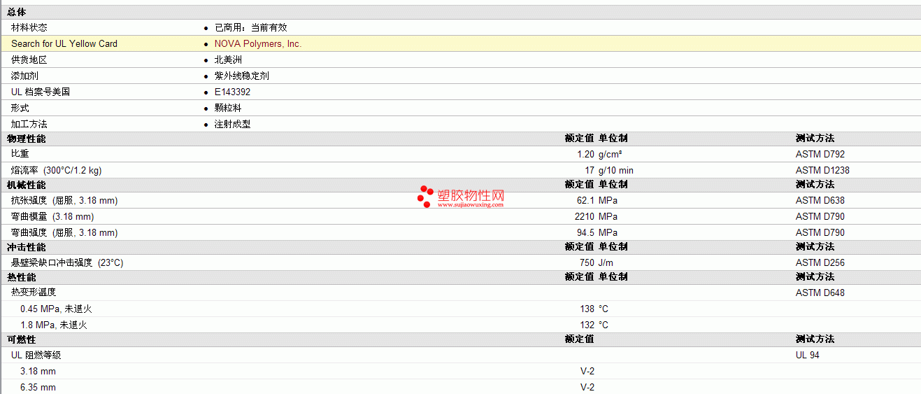 NOVA PC 1023物性表 见图片