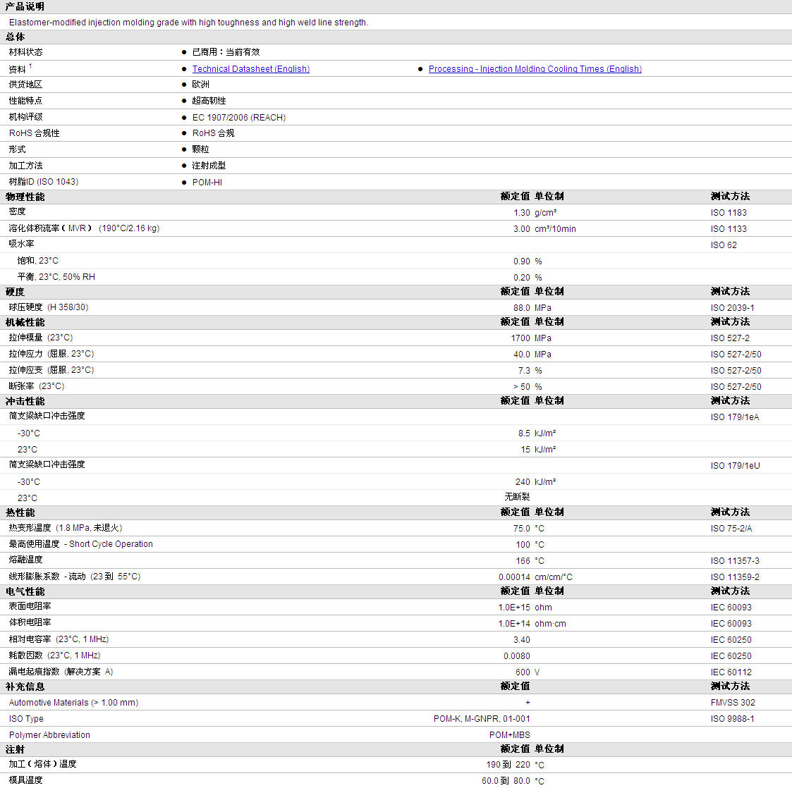 | 溶化体积流率(MVR) (190°C/2.16 kg) | 3.00 | cm³/10min | ISO 1133 |