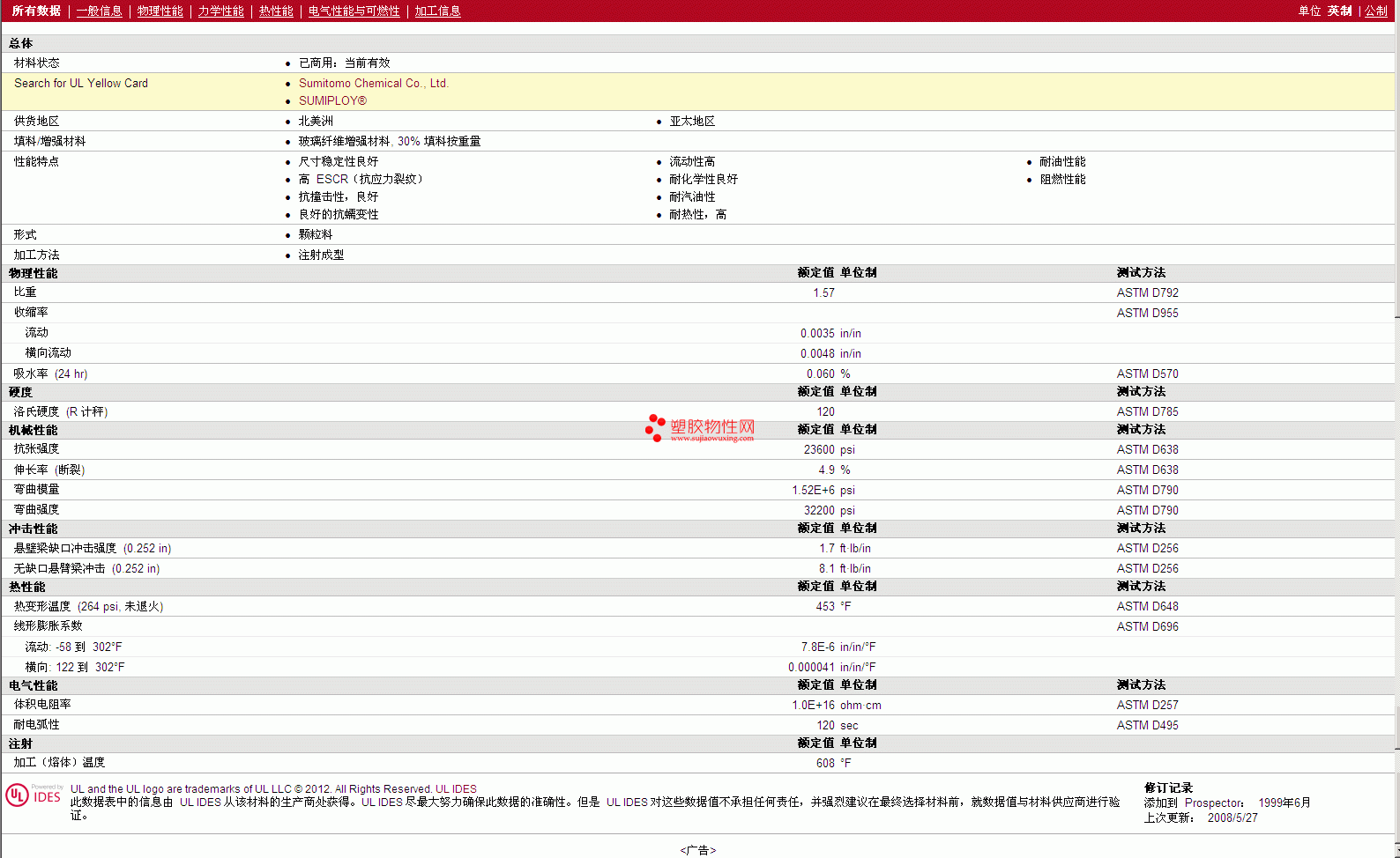 需了解 SUMIPLOY PSU PS5660 物性表材质证明、ROHS(SGS)报告、物质安全资料表(MSDS)、UL黄卡等可来电咨询:赵先生:13424755533或QQ: 27660005