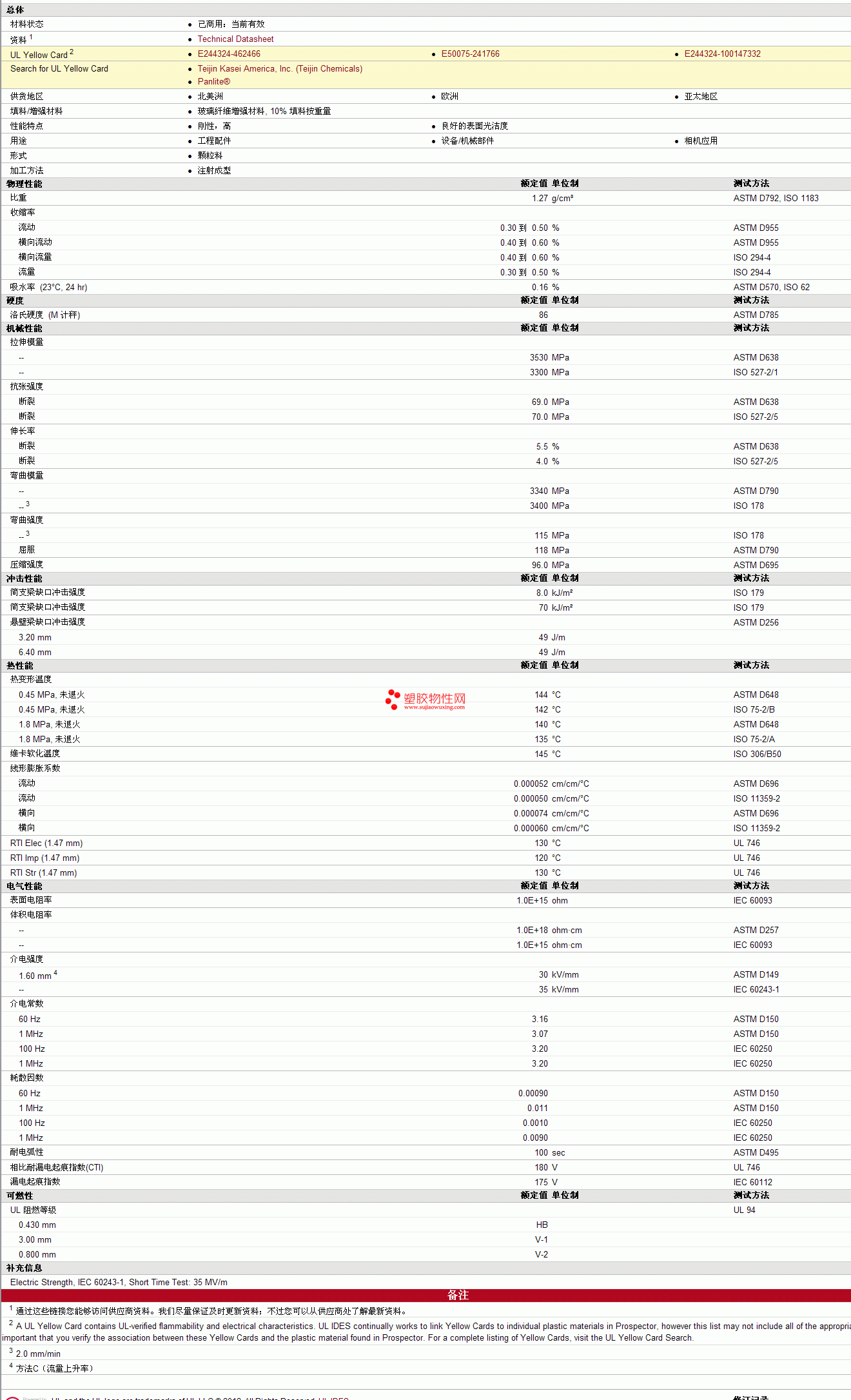 Panlite pc G-3410H物性表见图片