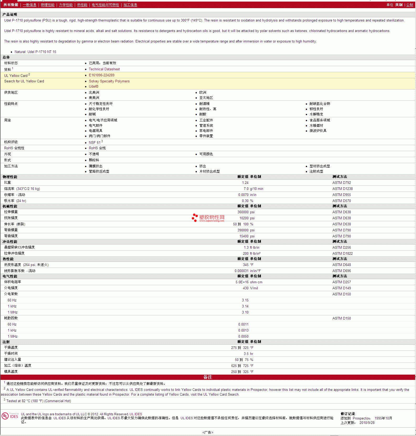 如需了解Udel PSU P-1710 物性表更多详情,ROHS(SGS)报告、物质安全资料表(MSDS)、材质证明、UL黄卡等,最新行情报价等可来电咨询:赵先生:13424755533或QQ: 27660005