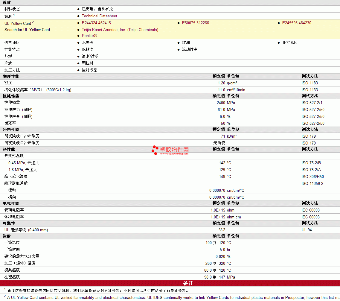 Panlite pc L-1225 物性表见图片