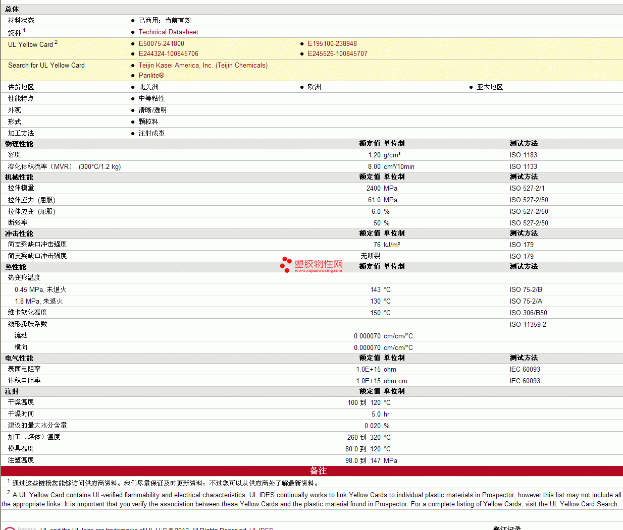 Panlite pc L-1250物性表 见图片