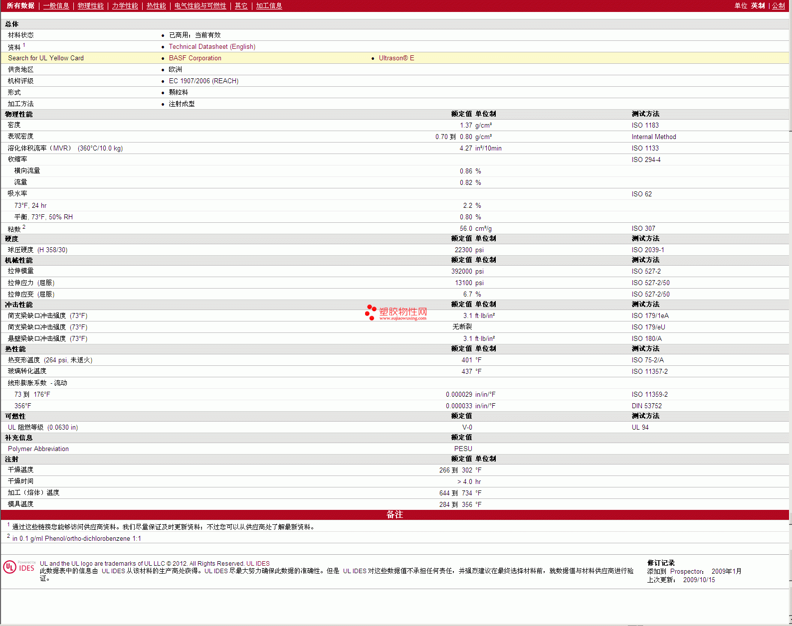 需了解Ultrason PSU E 2010 SW Q31 10088 物性表材质证明、ROHS(SGS)报告、物质安全资料表(MSDS)、UL黄卡等可来电咨询:赵先生:13424755533或QQ: 27660005