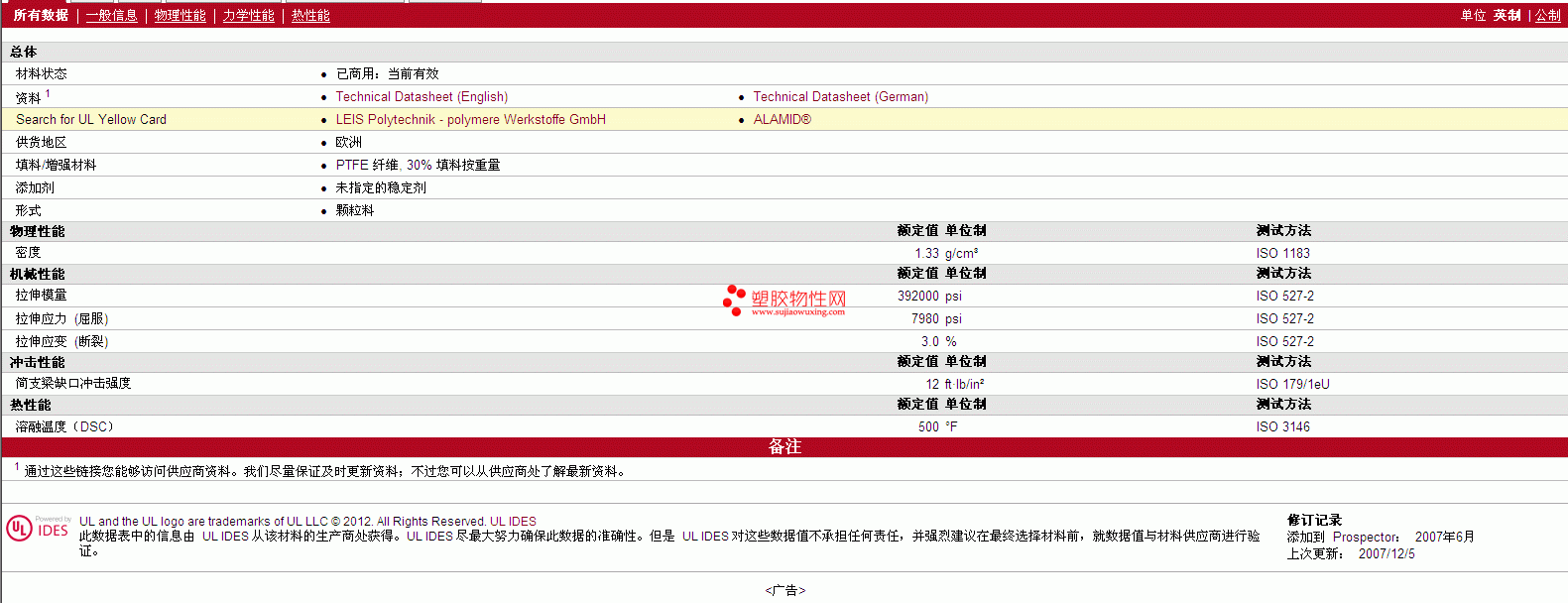 需了解ALAMID PTFE 6.6 PTFE 30 物性表更多详情,材质证明、ROHS(SGS)报告、物质安全资料表(MSDS)、UL黄卡等,最新行情报价等可来电咨询:赵先生:13424755533或QQ: 27660005