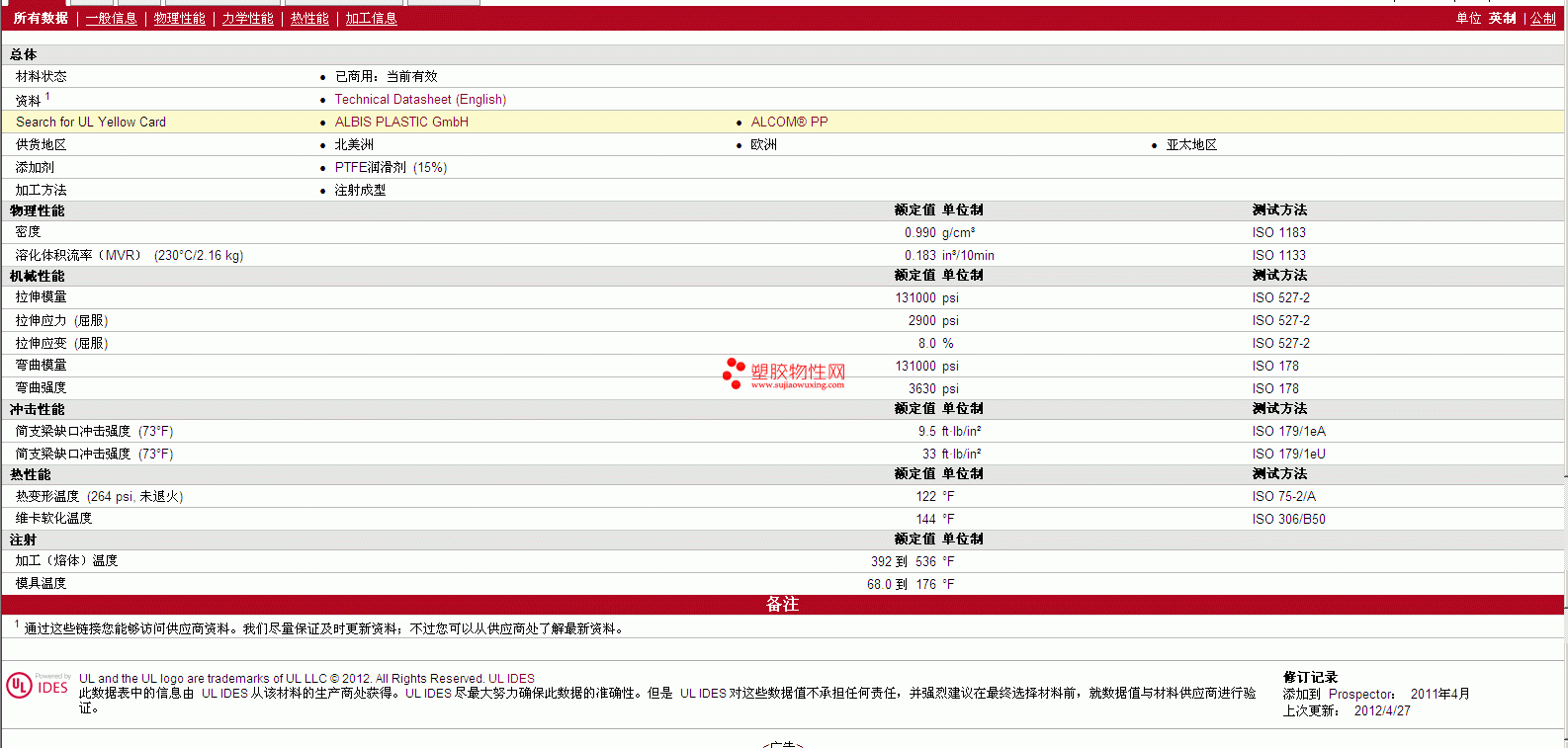 ALCOM PTFE PP 620/4010 PTFE15 物性表