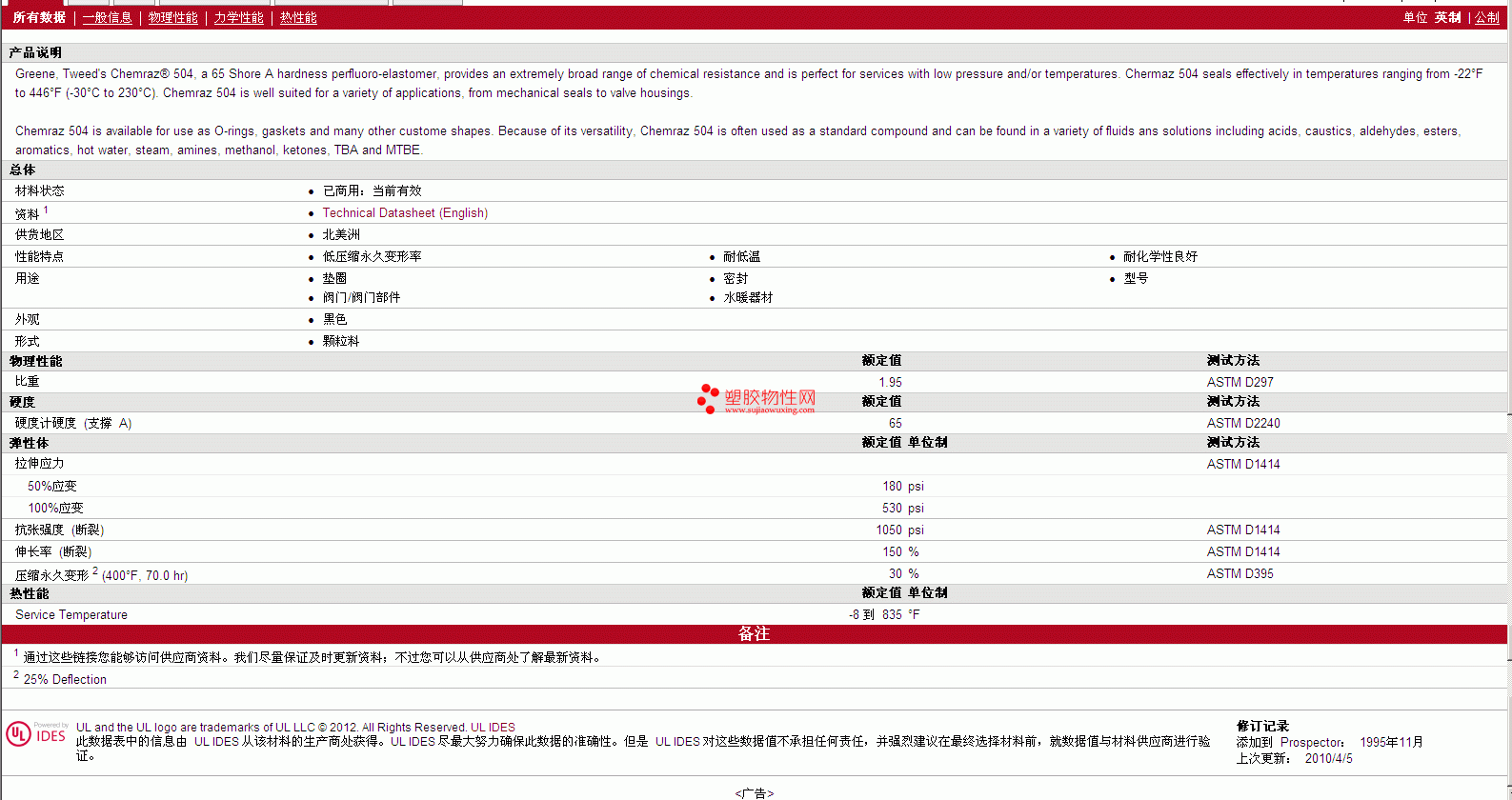 如需了解Chemraz PTFE 504 物性表更多详情,ROHS(SGS)报告、物质安全资料表(MSDS)、材质证明、UL黄卡等,最新行情报价等可来电咨询:赵先生:13424755533或QQ: 27660005
