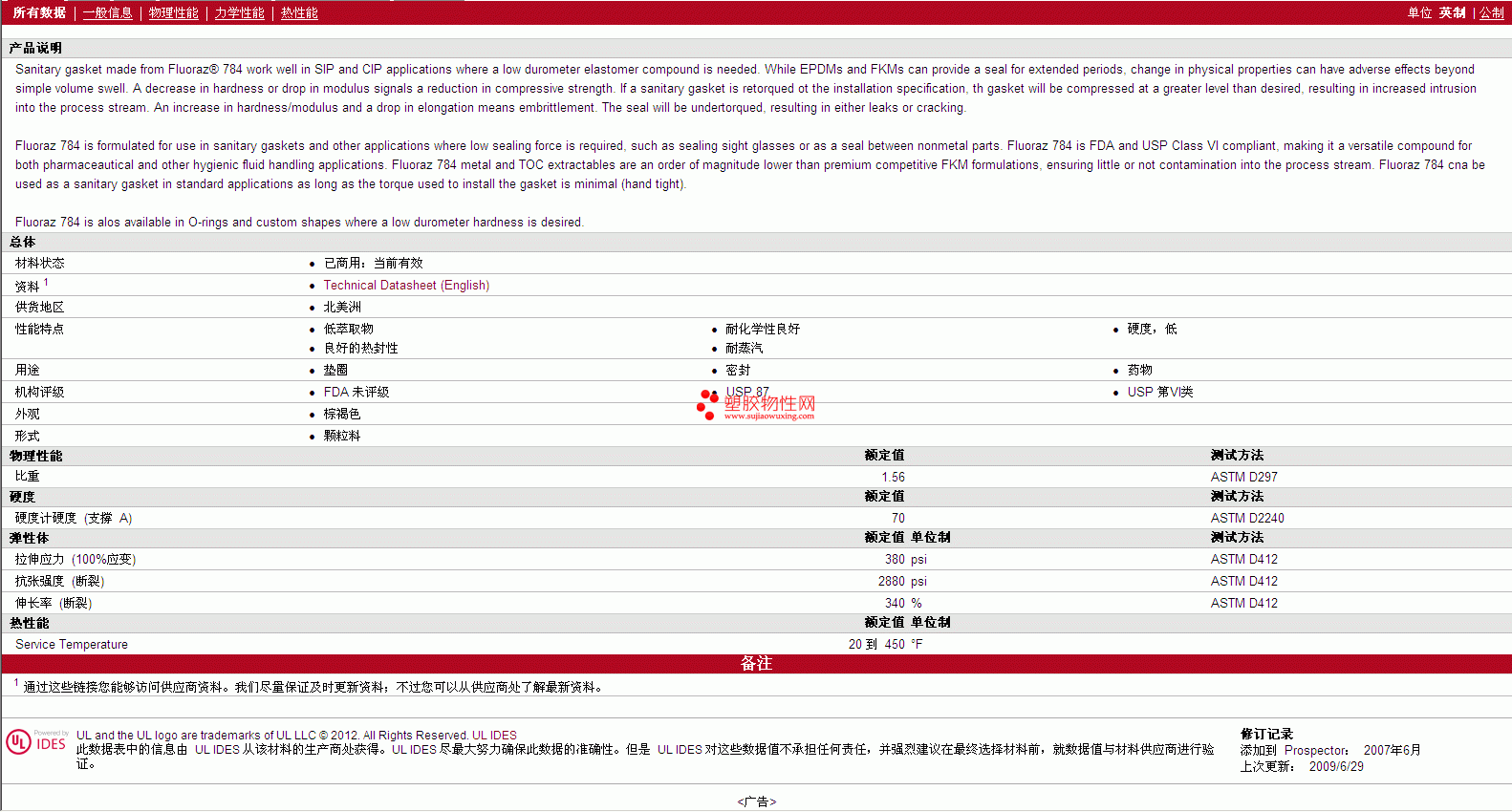 更多Fluoraz PTFE 784 物性表报价,图片、材质证明、UL黄卡、物质安全资料表(MSDS)等可来电咨询赵先生:13424755533或QQ: 27660005