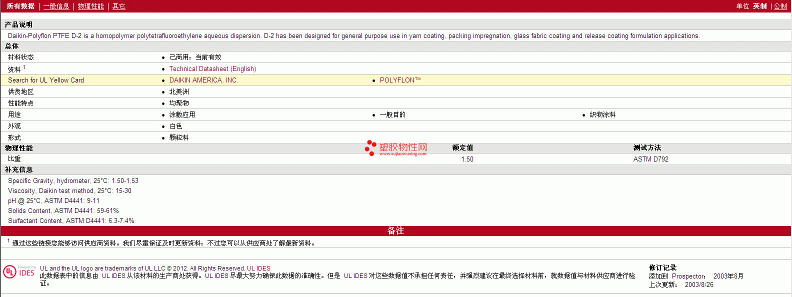 需了解POLYFLON PTFE D-2 物性表材质证明、ROHS(SGS)报告、物质安全资料表(MSDS)、UL黄卡等可来电咨询:赵先生:13424755533或QQ: 27660005