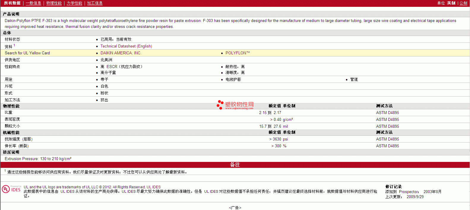 更多POLYFLON PTFE F-303 物性表报价,图片、材质证明、UL黄卡、物质安全资料表(MSDS)等,最新行情报价等可来电咨询赵先生:13424755533或QQ: 27660005