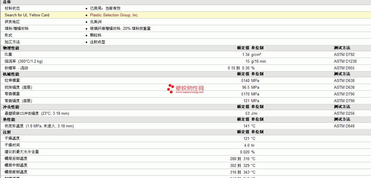 PSG PC GF20物性表 见图片