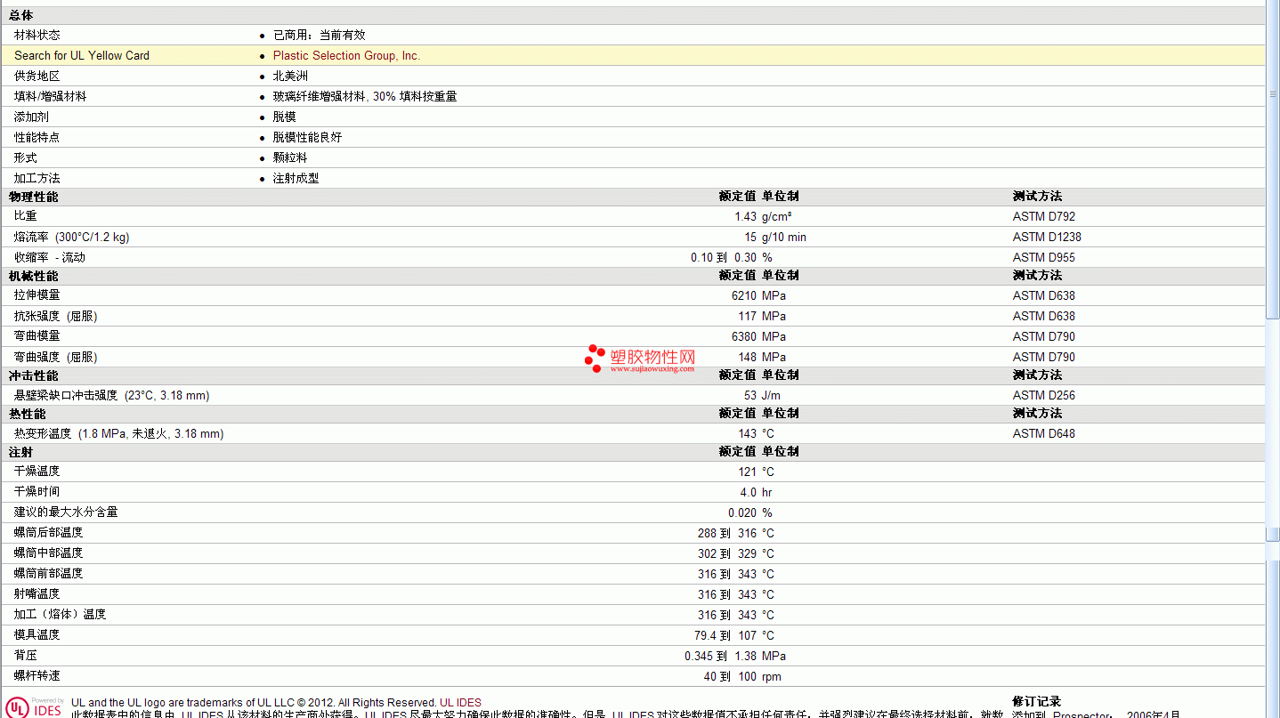 PSG PC GF30R物性表 见图片