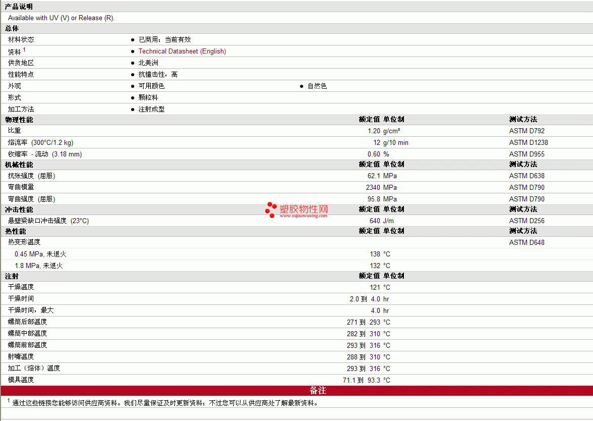 CYCOLOY ABS+PC CY6310 Resin 物性表