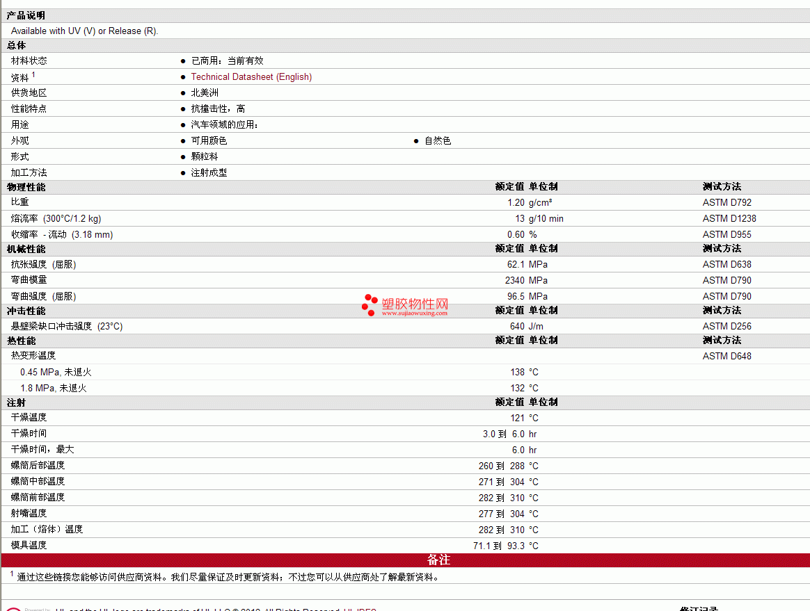 | 弯曲模量 | 2340 | MPa | ASTM D790 |