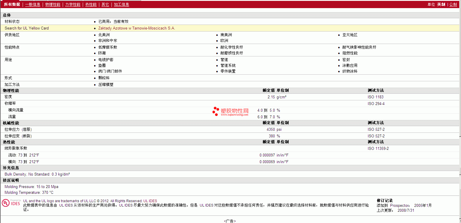 更多Tarflen PTFE SM1 物性表报价,图片、材质证明、UL黄卡、物质安全资料表(MSDS)等可来电咨询赵先生:13424755533或QQ: 27660005