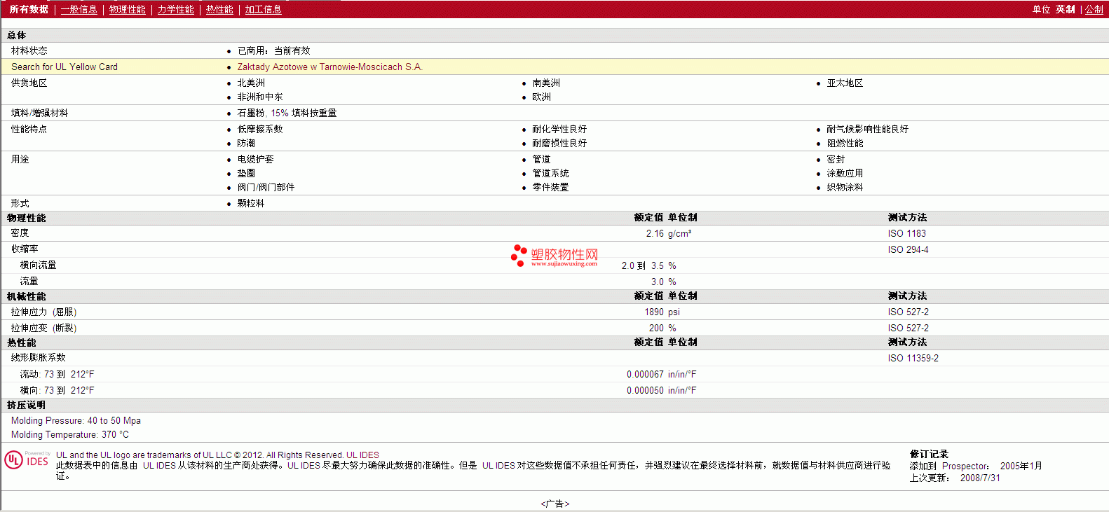 需了解Tarflen PTFE SM-G15 物性表材质证明、ROHS(SGS)报告、物质安全资料表(MSDS)、UL黄卡等可来电咨询:赵先生:13424755533或QQ: 27660005